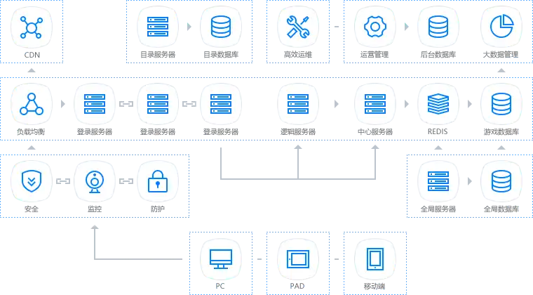 游戏云服务,从构建基础设施到游戏上线到后期精细化运营,服务服务涵盖项目整个发展周期。拥有业内领先的贵阳云数据中心以及国内优质的BGP多线网络资源,高效稳定的云服务器、云数据库以及专业的安全服务,为用户提供贴心全面的游戏云解决方案。为用户提供贴心全面的的游戏云解决方案,筑造游戏稳定运行的基石。